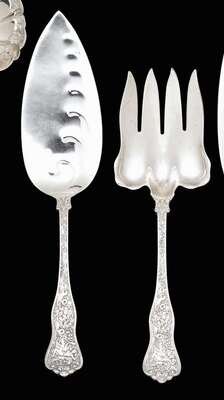 Tiffany & Co. 'Olympian' pattern sterling silver fish serving set date marks for 1892-1902