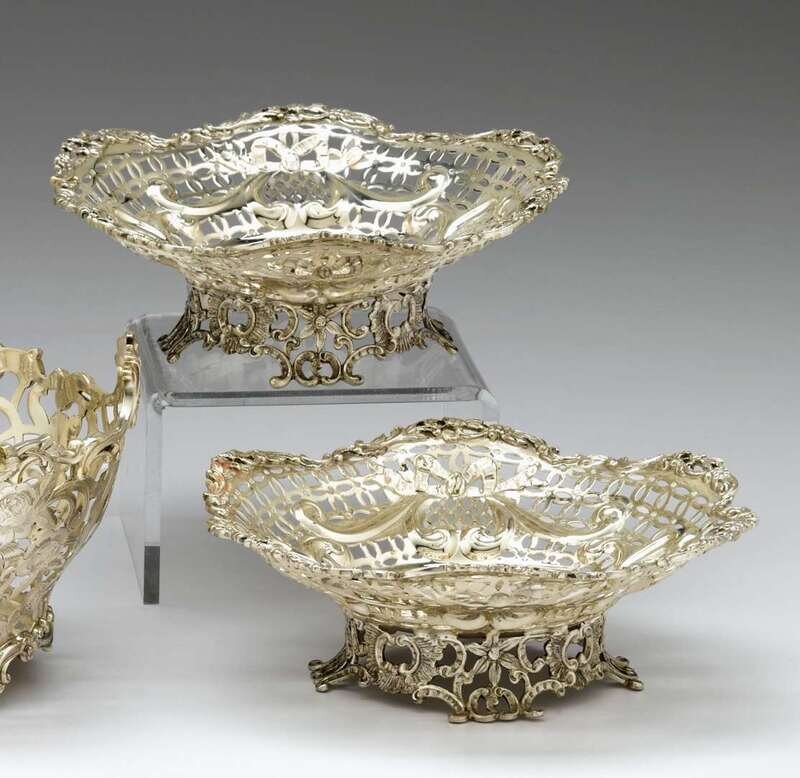 Pair of Victorian sterling silver pierced bon bon dishes william comyns, london, 1889