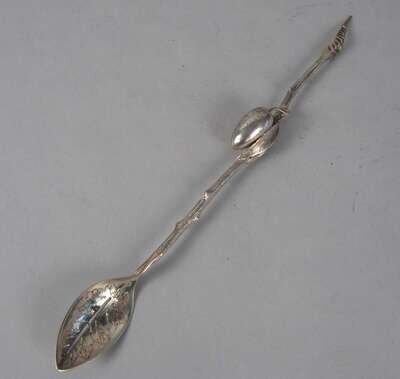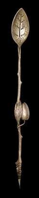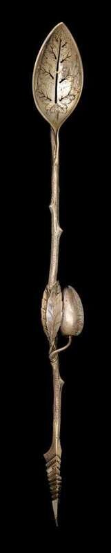 In the Aesthetic taste, with a naturalistic twig handle and a pierced bowl shaped as a leaf.
