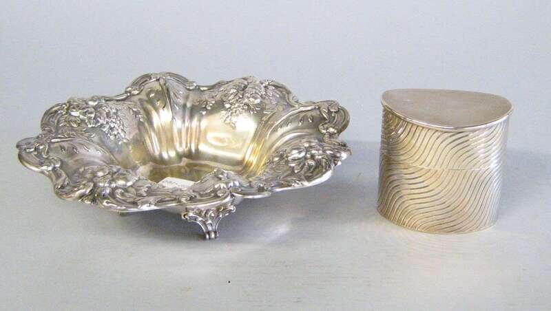 Of circular scalloped form, with repousse decoration of flowers and scrolls; together with an Italian silver box retailed by Tiffany & Co. (2).