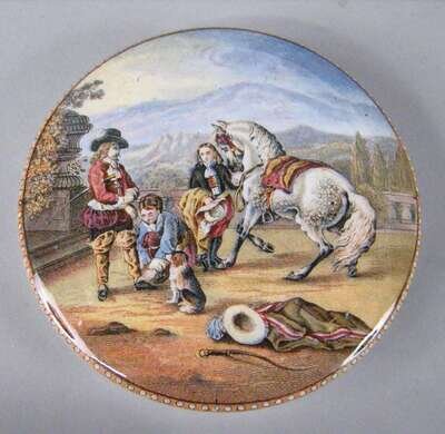 Comprising 'The Shrimpers', 'Hawling in the Trawl', 'Preparing for the Ride', 'The Village Wedding', 'Il Penserosa', 'The Enthusiast', 'The Sportsman' and 'Victor Emmanuel & Garibaldi', all with transfer decoration. (8).