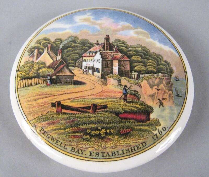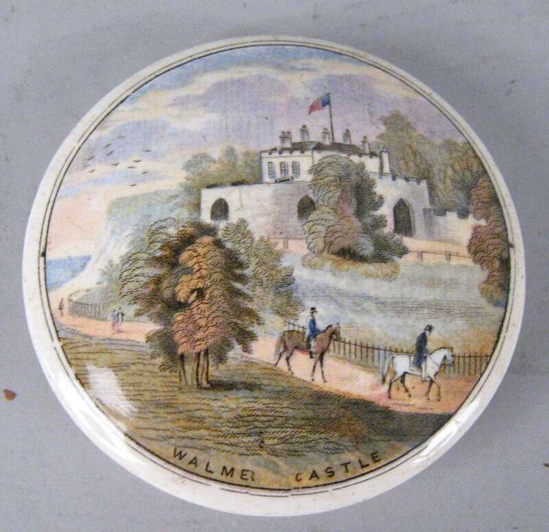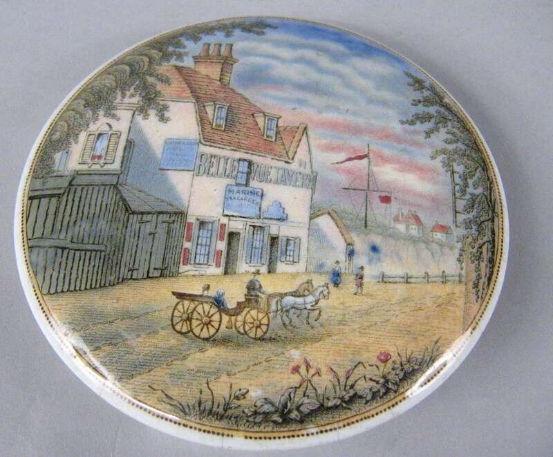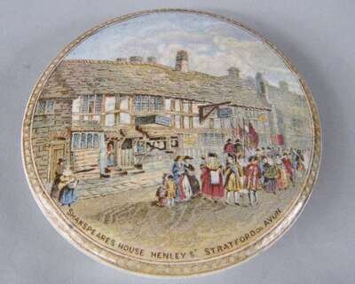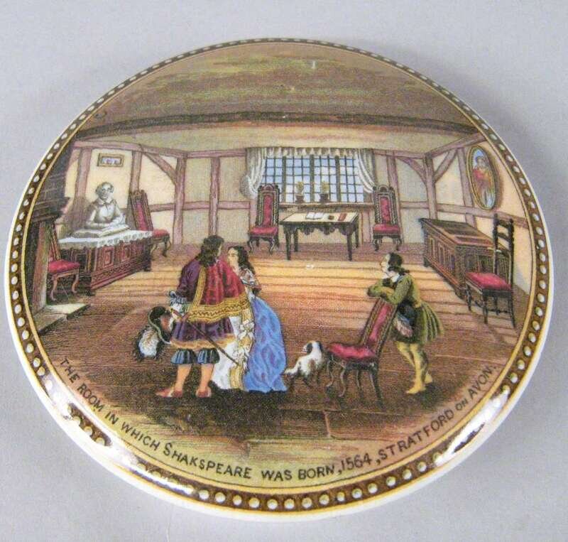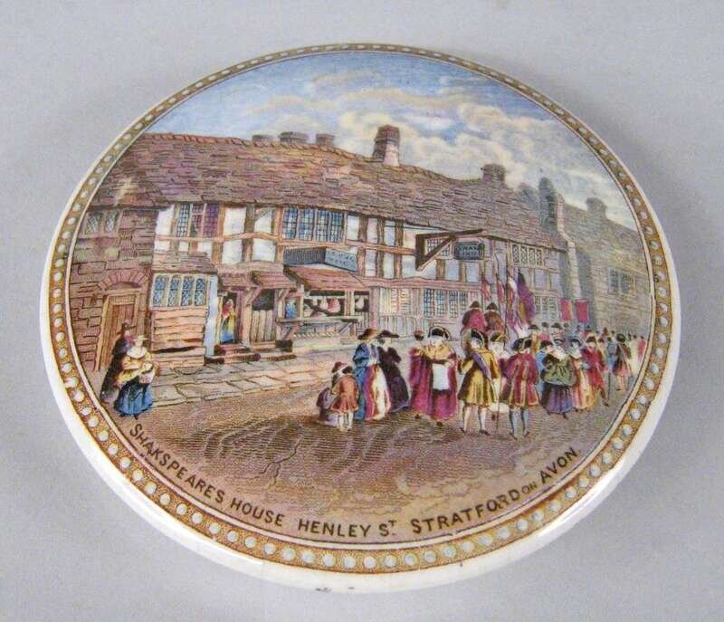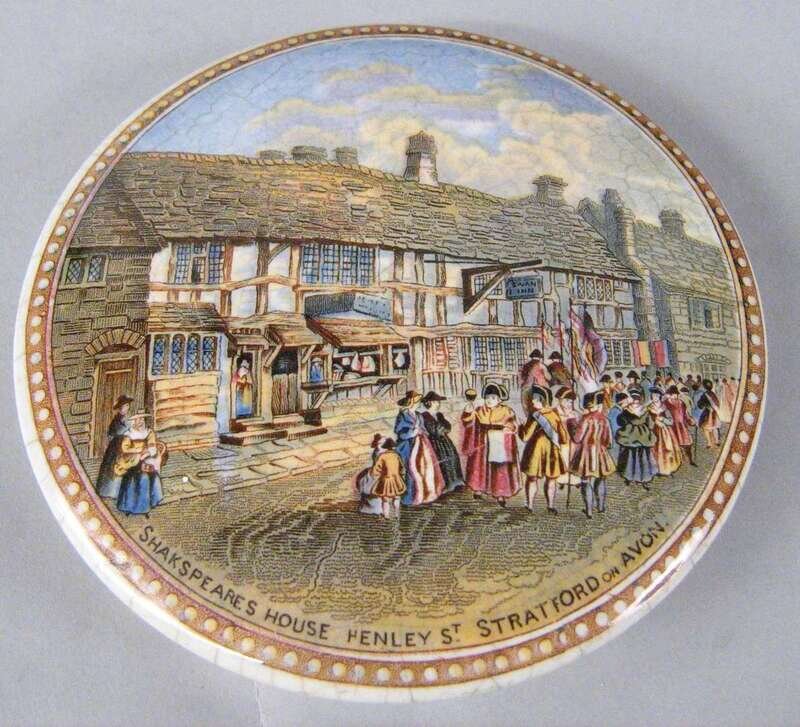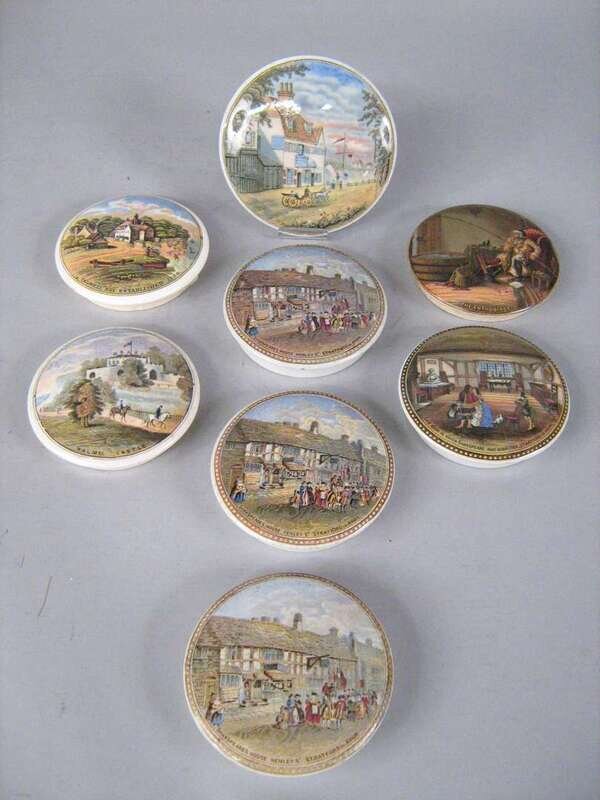 Comprising 'The Enthusiast', 'Walmer Castle', 'The room in which Shakspeare was born', three 'Shakspeare's house on Henley St.', 'Pegwell Bay' and 'Belle Vue Tavern', each with transfer printed scenes. (8).