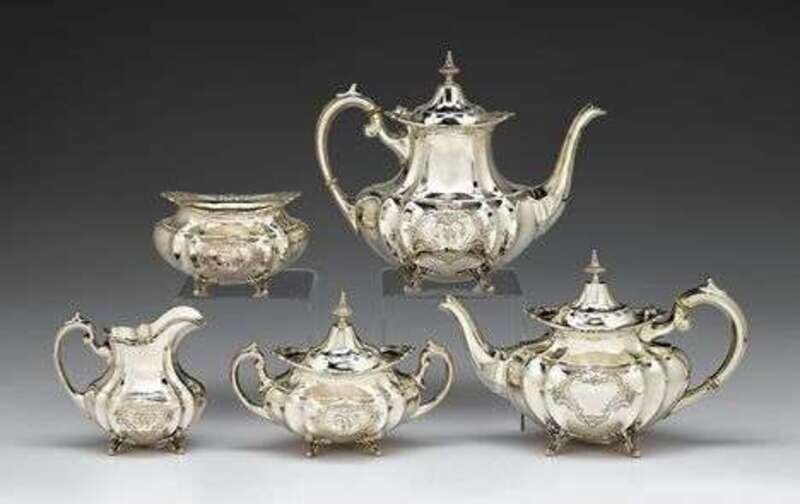 Reed & Barton 'Hampton Court' pattern five piece sterling silver tea and coffee service mid 20th century