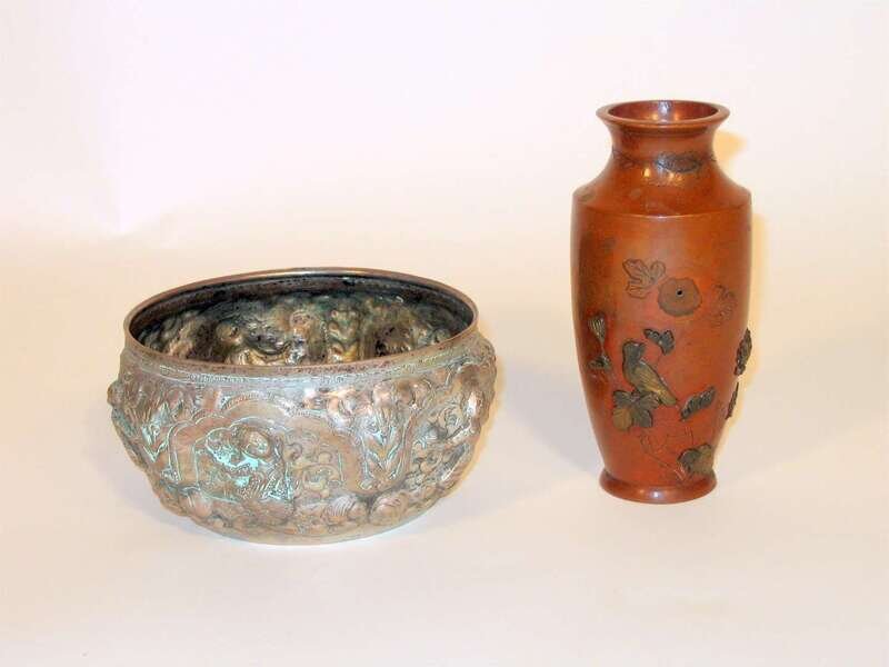 Small Japanese mixed metal vase and silver thai alms bowl 19/20th century
