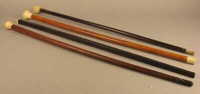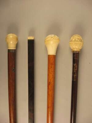 Group of four ivory mounted walking sticks 19th/ 20th century