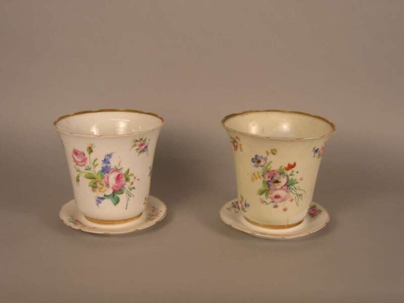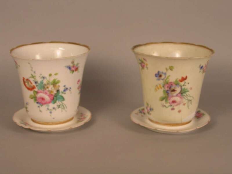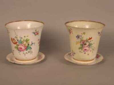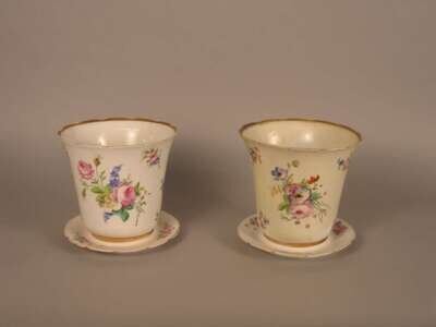 Of tapered form decorated with painted floral bouquets on a white ground. (2).