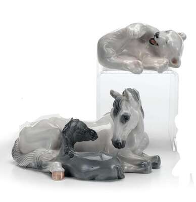 Comprising a mare and her foal (4698), a playful polar bear cub (729), a pair of ducks (2128), a fish (1138), a sparrow (76) and a pair of geese (609). (6).