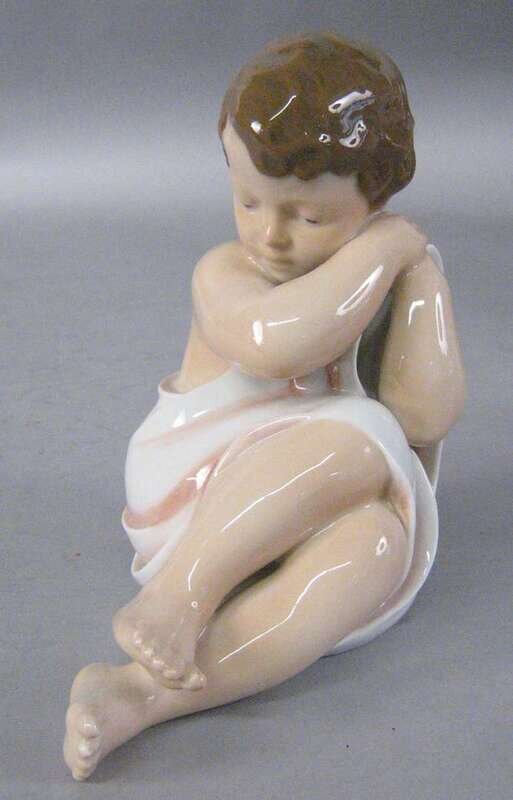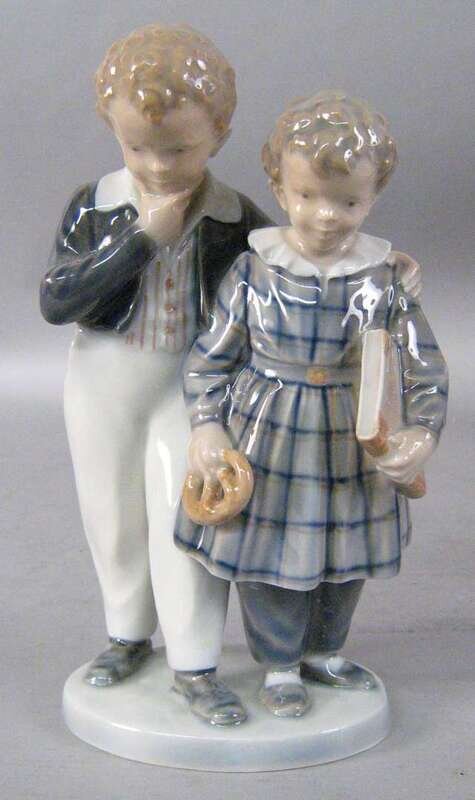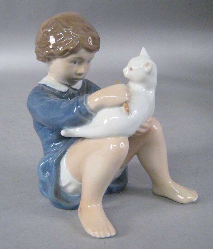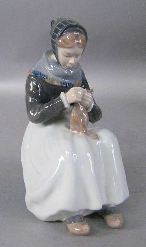 Comprising a seated woman sewing (1317), a pair of children (1761), a farm woman with milking bucket (899), a mermaid on a rock (4431), a seated child playing with a cat (4631) and a young child (3009). (6).