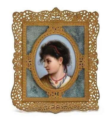 Berlin oval porcelain plaque of a Neopolitan girl early 20th century