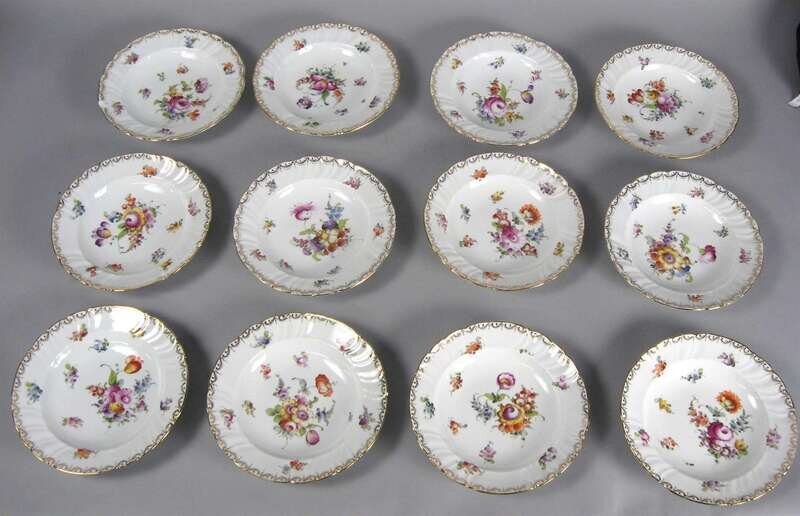Set of twelve Dresden porcelain soup bowls late 19th / early 20th century