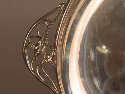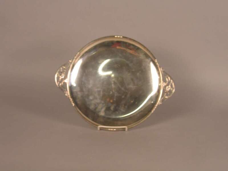 Of circular form with two stylized foliate handles.