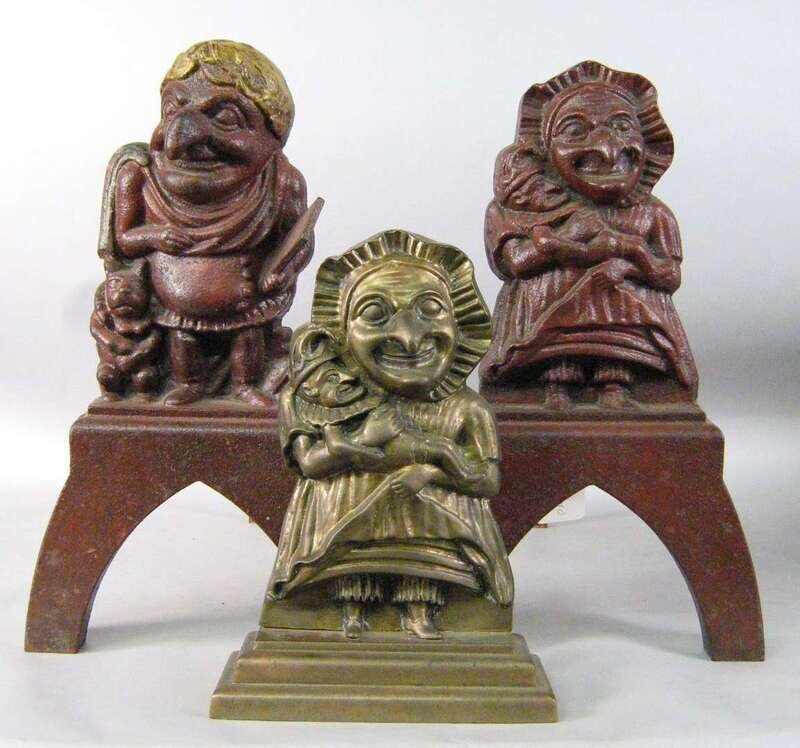 Pair of Punch and Judy painted cast iron andirons 20th century
