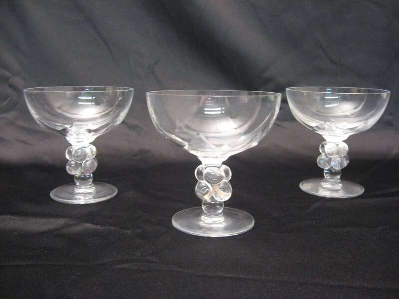 Each with a wide bowl over a stem with a molded cluster of grapes, inscribed 'Lalique'. (12).