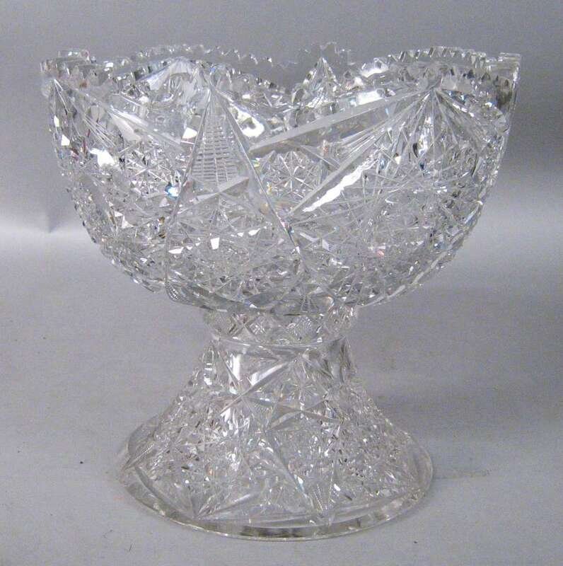 American Brilliant cut glass punch bowl on stand 19th century