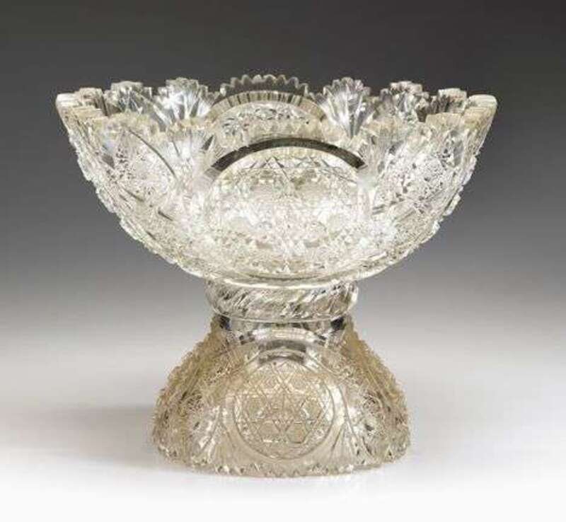 American Brilliant cut glass punch bowl on stand