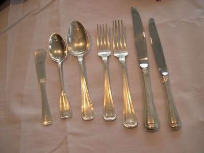 Dinner fork L: 7 3/4, dinner knife L: 9 3/4 in. 105.58 oz. weighable silver