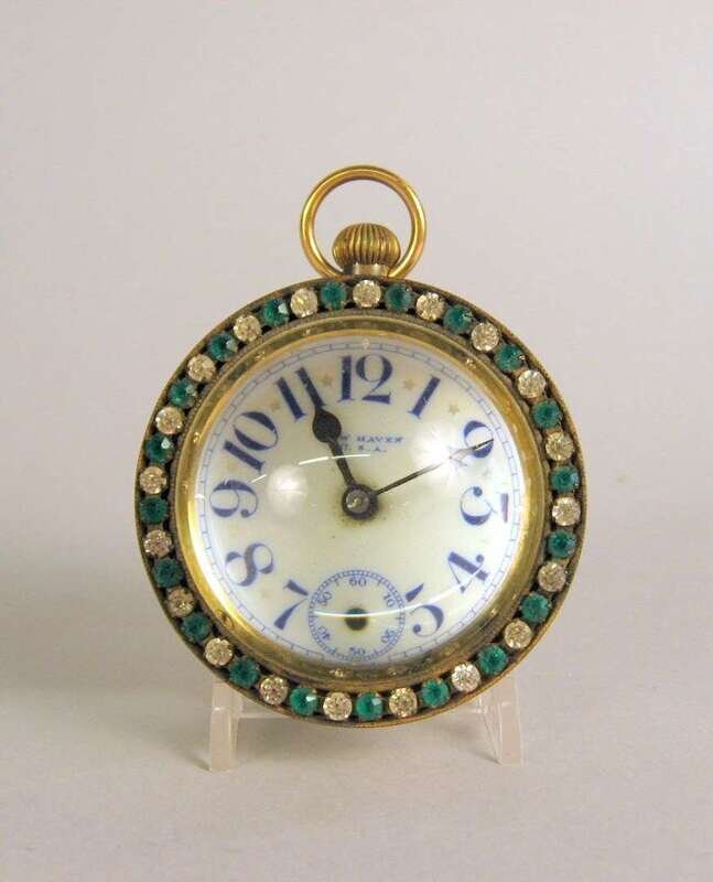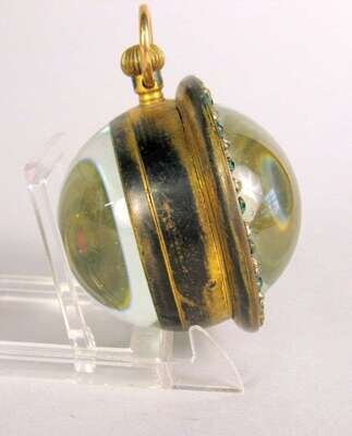 The glass orb enclosing an enamel white enamel face with Arabic numeral dial with subsidiary seconds hand.