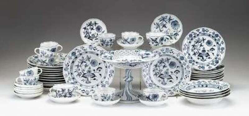 Meissen 'Blue Onion' pattern porcelain part dinner service
