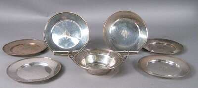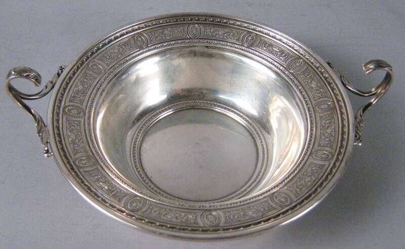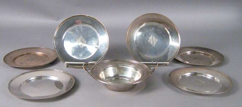 Monogrammed; together with an International Sterling 'Wedgwood' bowl decorated with neoclassical motifs. (7).