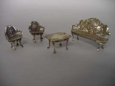 Comprising a settee, two side chairs and a coffee table, each piece stamped 'Sterling'. (4).