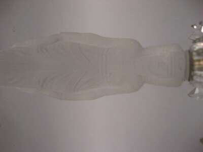 Three-light candelabrum, the frosted glass stem in the form of a standing maiden, resting on a pressed glass base.