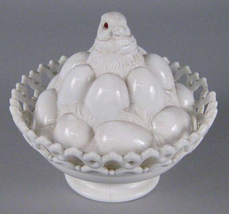 Five milk glass covered dishes atterbury glass company, pittsburgh, pa. circa 1890