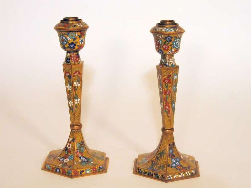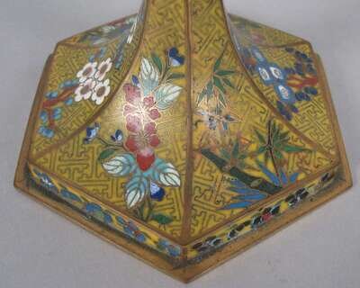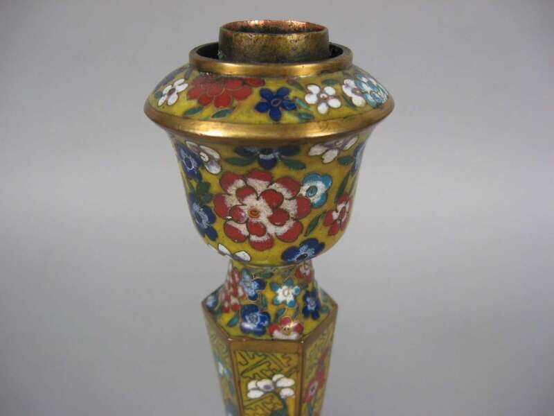 Pair of Chinese yellow cloisonne candlesticks late qing dynasty