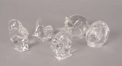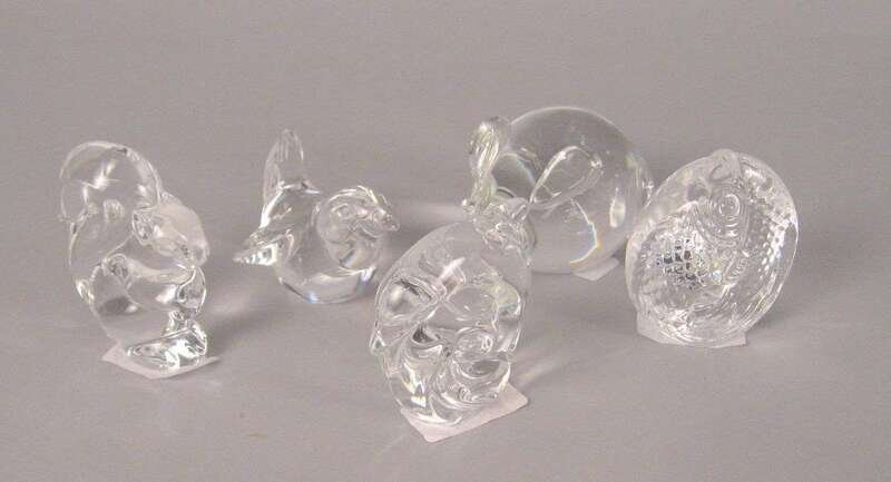 Comprising a mouse (8242), dolphin on a wave, a sparrow, a fish and a squirrel, each inscribed 'Steuben' to the undersides (5).