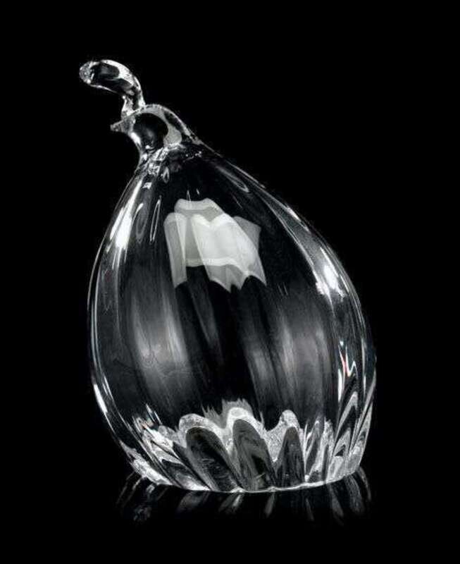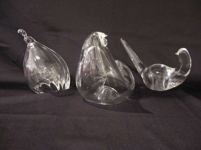 Comprising a dove, a guinea fowl and a hen, each with inscribed 'Steuben' to underside. (3).