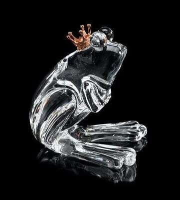 Steuben gold mounted glass figure of the Frog Prince designed by lloyd atkins, model 1031, 1973