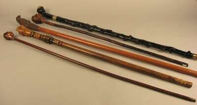 Group of five carved 'folk art' walking sticks 19th/ 20th century