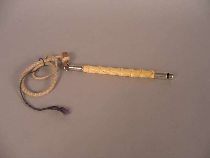 English sterling silver and ivory whistle retailed by swaine and adeney