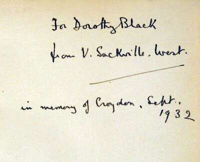 Additionally inscribed to Dorothy Black, dated, "in memory of Croydon, Sept. 1932," & signed V. Sackville-West on front free endpaper recto. Dorothy Black, leading actress who was instrumental in the novel's adaptation for the stage.