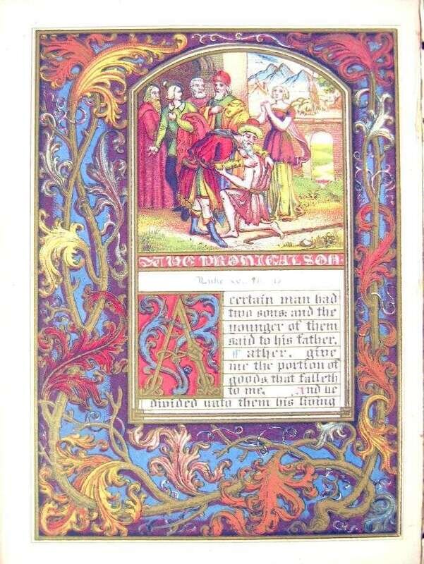 (Papier-Mache Binding.) The Parables of Our Lord. New York: Appleton, 1848. 12mo, orig. black ornamental papier-mache bdg. Color & tinted lithographic? pictorial borders. Bdg starting to break. Internally clean.