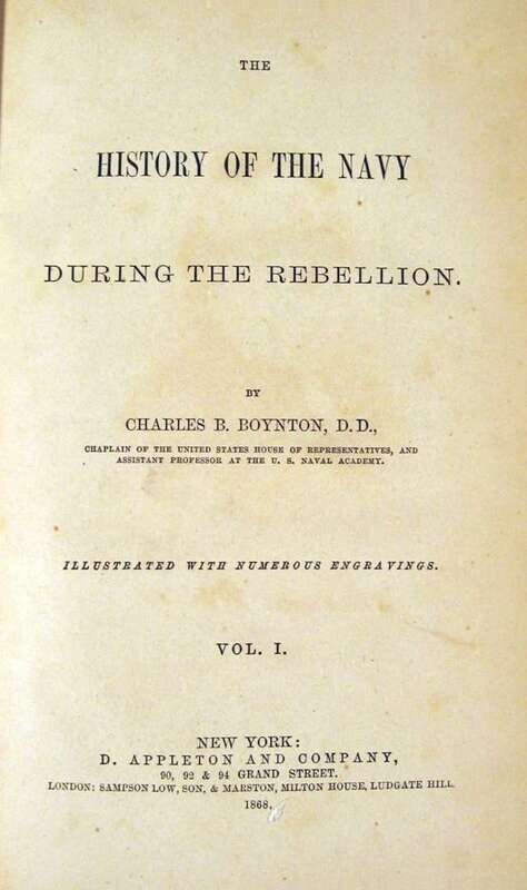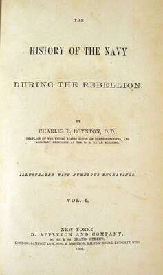 Boynton, Charles B. The History of The Navy During The Rebellion. New York: D. Appleton, 1868. Tall 8vo, later full sheep, black & red morocco spine labels, marbled edges. Minor wear. With 36 plates & full-page illus. - several plates hand-colored. Scattered light to occasionally moderate foxing.