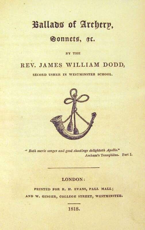 Dodd, James William. Ballads of Archery, Sonnets, & C. London, 1818. 8vo, contemp. calf; scuffed & rubbed, spine defective, covers detached. Head & tail pieces. Internally clean.