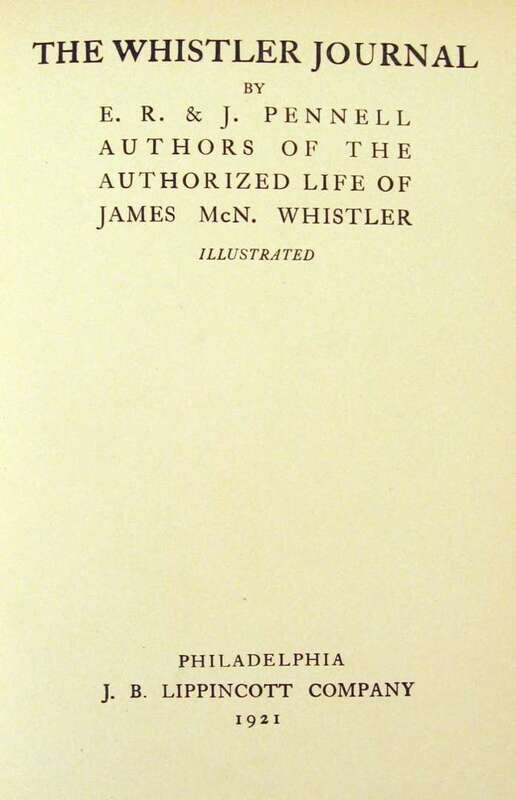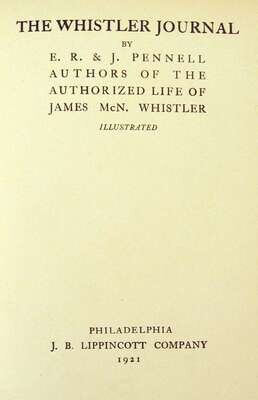 Pennell, E.R. & J. The Whistler Journal. Philadelphia: J.B. Lippincott, 1921. Autograph Edition, 1/150. Sm. thick 4to, orig. 1/4 vellum & gilt-lettered brown cloth, gilt-lettered spine, t.e.g., other edges untrimmed; spine slightly darkened, spine ends & edges scuffed. Plates. With double litho frontis. portraits of E.R. & J. Pennell, each signed by its subject.