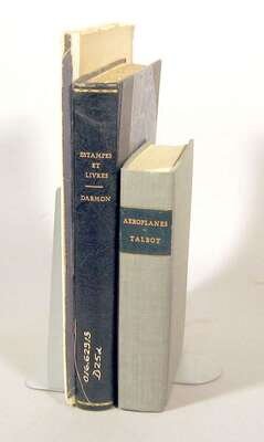 Aeronautics: Tissandier, Gaston. Bibliographie Aeronautique: Catalogue de livres... Paris: H. Launette, 1887. 4to, orig. color pictorial wrappers; edge wear, some darkening, spine reinforced with cloth tape. Internally generally clean, edges very slightly discolored. * Darmon, J.E. Dictionnaire des Estampes & Livres Illustres sur les Balloons & Machines Volantes. Montpellier: H. Barral, 1929. #14/100. 4to, later cloth & marbled bds., orig. color pictorial front wrapper bound in. Color frontis. + 20 (3 color) plates. Bookplate of the noted collector Bella C. Landauer on verso of front wrapper. Ex-library - markings on spine & front blank. * Talbot, Frederick A. Aeroplanes and Dirigibles of War. Philadelphia: J.B. Lippincott, 1915. 1st Am. ed. 8vo, modern cloth. Photo plates, text illus. Some internal dampwrinkling.