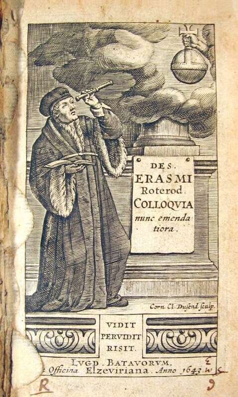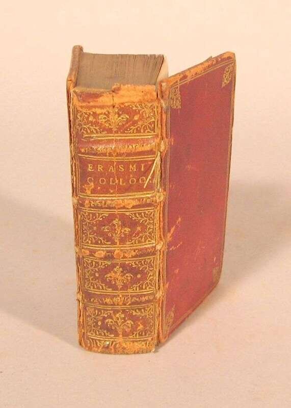 Erasmus, Desiderius. Colloquia. Leiden: Elzeviriana, 1643. 12mo, 18th-Century red morocco, gilt, inner dentelles gilt, a.e.g.; joints & extremities rubbed, head of spine rubbed away. Internally generally clean. Trimmed - a few heads shaved close. Engraved vignette title, gutter blistered. Armorial bookplate of Thomas Preston.