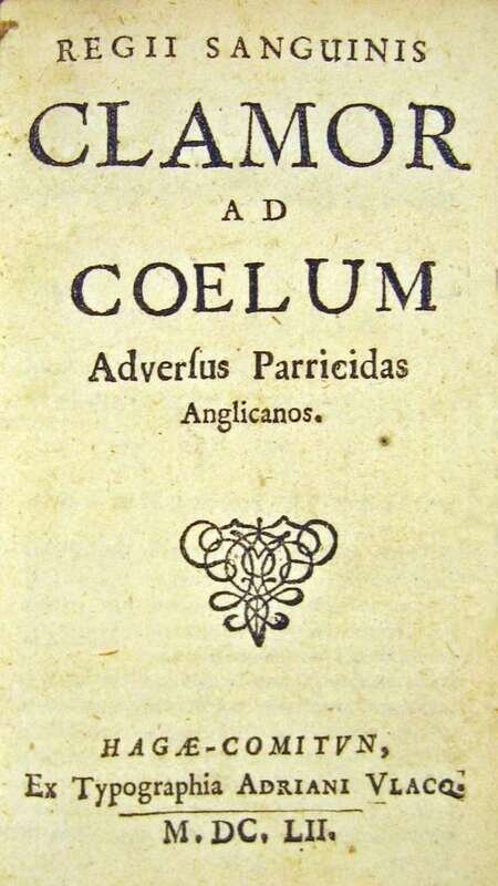 Regii Sanguinis Clamor ad Coelum Adversus Parricidas Anglicanos. The Hague, 1652. 12mo, contemp. vellum; some edge wear.