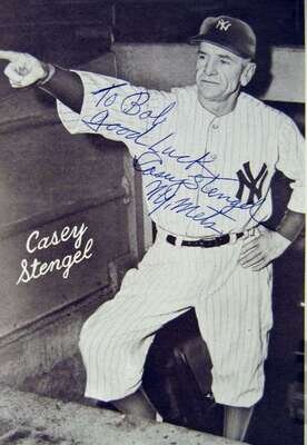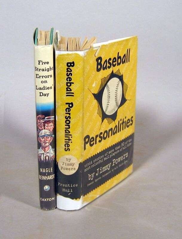 Signed Books - Baseball Subjects: Powers, Jimmy. Baseball Personalities. New York: Rudolph Field, (1949). 12mo, orig. green cloth; edge wear, spine faded, d/j (chipped & creased, price clipped). Plates. Signed by Ted Williams, Yogi Berra, Babe Herman, Casey Stengel on their photo portrait plates. Internally clean. * Nagle, Walter. Five Straight Errors on Ladie's Day. Caldwell: Caxton, 1965. 1st ed. 8vo, orig. cloth; light wear, d/j (some creasing). Photo plates. Some internal dampwrinkling. Signed & inscribed by Nagle on front free endpaper recto. Also signed by Casey Stengel on his photo portrait.