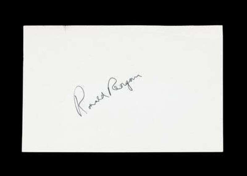 Autograph Material - Large file of signed small format paper sheets (most ca. 5 x 8 inches; 127 x 203 mm). Primarily Theatre, Motion Picture & Classical Music performers - a small sample of signatures includes: Claudio Abbado, Marian Anderson, Eve Arden, Charles Aznavour, Lucille Ball, Jack Benny, E. Power Briggs, Pablo Casals, Fred Clark, Dale Evans, Eileen Farrell, Dame Margo Fonteyn, Glen Ford, Tito Gobbi, Benny Goodman, Lionel Hampton, Billie Holiday, Veronica Lake, Dorothy Lamour, Gypsy Rose Lee, Liberace, Joshua Logan, Anita Loos, Jean Marais, Mary Martin, Mable Mercer, Thomas Mitchell, Rick Nelson (photo), Jerry Orbach, Roberta Peters, Ronald Reagan (dated 1975 by the collector), Diana Rigg, Thelma Ritter, Jackie Robinson, Ned Rorem, Billy Rose, Mort Sahl, George C. Scott, Peter Serkin, Maggie Smith, Deems Taylor, James Taylor, Sybil Thorndike, Irene Worth, Teresa Wright, Loretta Young.
