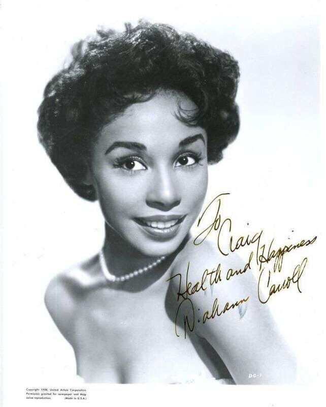 Photographs Signed. African-American Performers: Bailey, Pearl, ca. 1960. * Carroll, Diahann, 1958. * Dee, Ruby. ca. 1960. Inscribed & signed in green ink. * Hall, Juanita, ca. 1960s. * Kitt, Eartha, 1958. * Portier, Sidney, 1958. All silver prints, 10 x 8 inches (254 x 203 mm). Photos generally clean & crisp, signatures clean & generally strong.