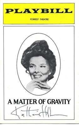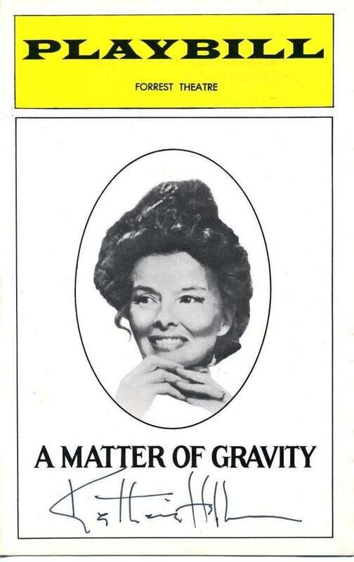 Theatre Programs Signed. Hepburn, Katharine: "Much Ado About Nothing." Philadelphia: The Playgoer, Locust, ca. 1958. * "A Matter of Gravity." Philadelphia: Playbill, Forrest Theatre, ca. 1976. (2). Signatures clean & generally strong.