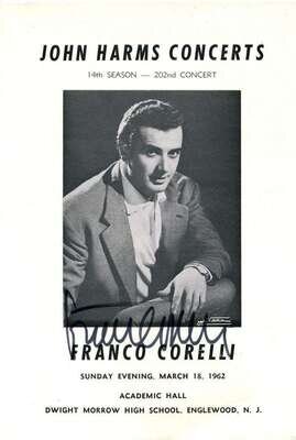 Autograph Material. Corelli, Franco: Photographs signed, silver prints, 5 10 x 8 inches (254 x 203 mm), 10 post card size formats. * 3 programs signed. * 1 program tear sheet signed. Scattered minor wear.