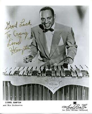 Photographs Signed. African-American Jazz Performers & C.: Davis, Sammy, Jr. Ca. 1960. Signed & inscribed, bold & clean, ink black ink. * Garner, Erroll. Signed & inscribed. * Gillespie, Dizzy. Ca. 1960. Signed, clear, in blue ink. * Hampton, Lionel. Signed & inscribed, clear, in gold ink. All silver prints, 10 x 8 inches (254 x 203 mm). All generally crisp & clean.