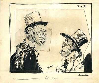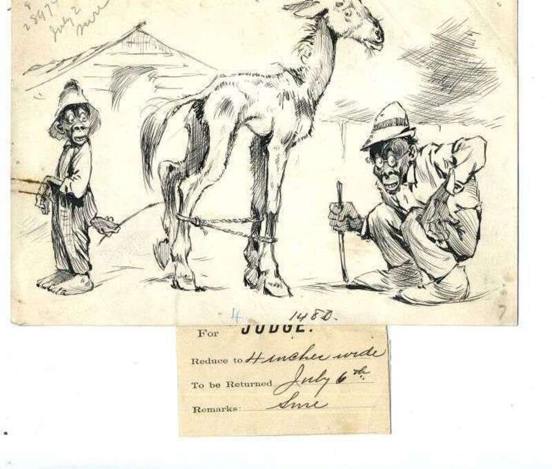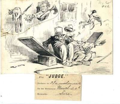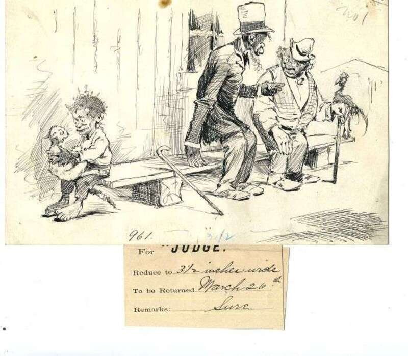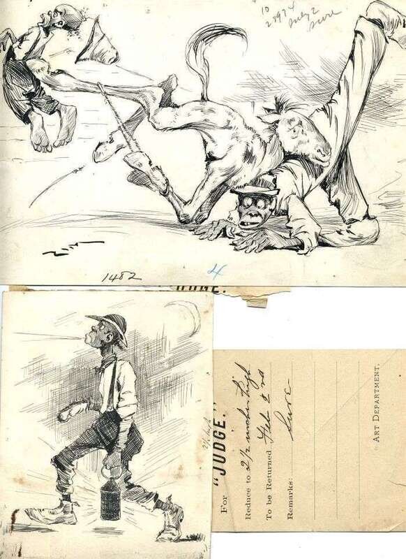 (Original Cartoon & Illustration Art). Zimmerman, Eugene. Original pen & ink drawings. African-American caricatures. Most approx. 6 1/4 x 9 1/4 inches (158 x 234 mm) & smaller. For Judge Magazine, ca. 1886-1912. With production markings. All signed "Zim."