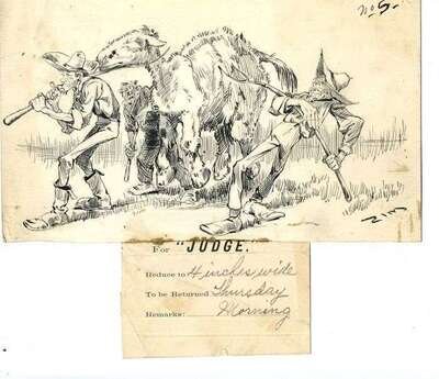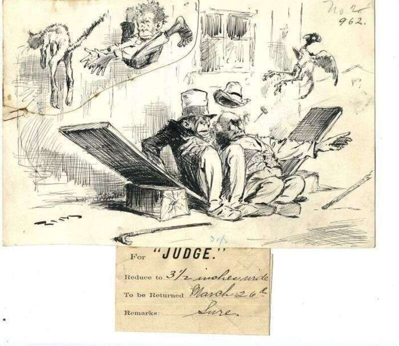 Known as "Zim," Eugene Zimmerman (1862-1935), one of the leading cartoonists of his era, worked for Puck & Judge magazines from 1883-1912, was founder & first president of The American Association of Cartoonists.