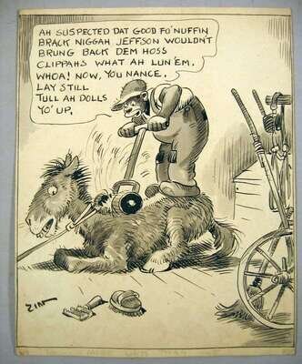 (Original Cartoon & Illustration Art). Zimmerman, Eugene. Original pen & ink & wash drawings. African-American caricatures. Most approx. 11 1/2 x 9 1/2 inches (292 x 240 mm) & smaller. For Judge Magazine, ca. 1886-1912. With production markings. All signed "Zim."