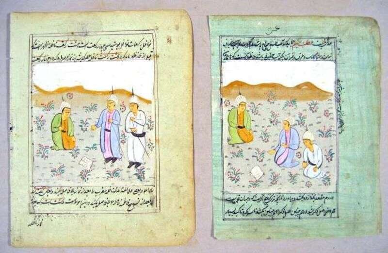 Persian Miniatures - 17th & 18th-Century leaves, early 20th-Century painted miniatures. Sheets 9 1/2 x 6 1/2 inches (240 x 165 mm).